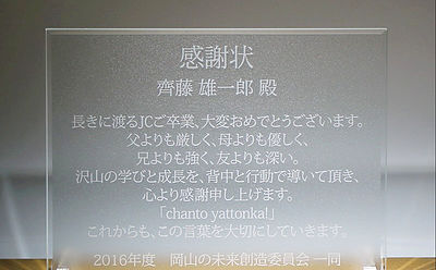 ![]() | 昨日商品無事にいただきました。 思っていた以上の仕上がりでとても 感動致しました。 注文から納品までわからないことは電話で 丁寧に教えていただきましたし、 出来上がりまでは とても楽しみにまっていました。 以前にも注文させていただいてとても喜ばれたので また機会があれば注文させていただきたいと思います。 ありがとうございました。 三重県 N様 |
